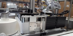的主要目标是安装一个灵活的机器人堆垛解决方案,可以处理重与其130磅的打印线,和处理每分钟8栈的最高吞吐量在一个特定的产品。gydF4y2Ba